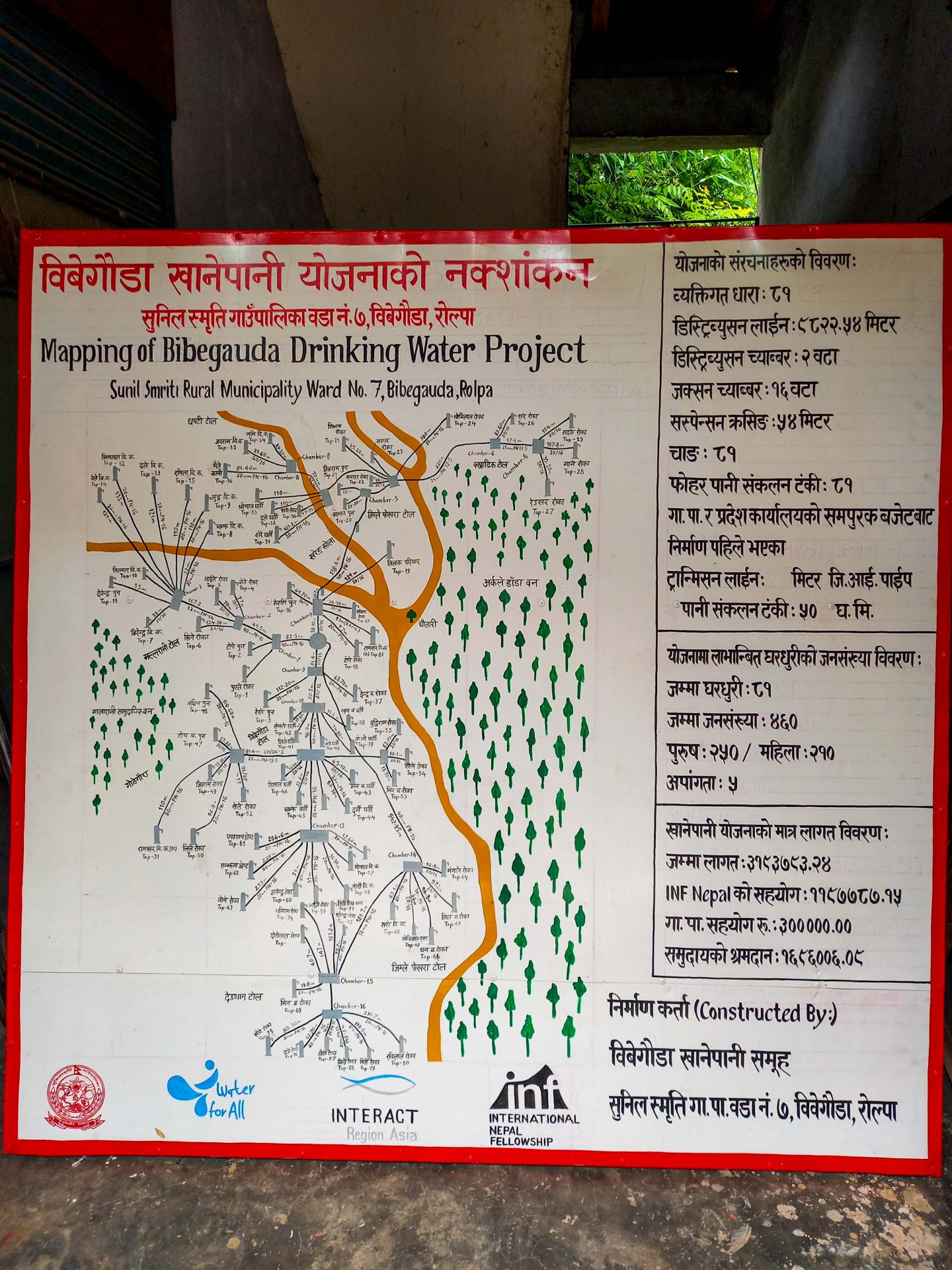 The total cost of the drinking water scheme, including the main system, wastewater collection ponds, and dish-drying racks, amounted to NPR 6,101,390. Of this, INF Nepal contributed NPR 2,344,010, Sunilsmriti Rural Municipality contributed NPR 300,000, and the local community contributed NPR 3,516,880 through labor contribution, local materials, and land support. This shared investment reflects strong partnership, local ownership, and collective responsibility.