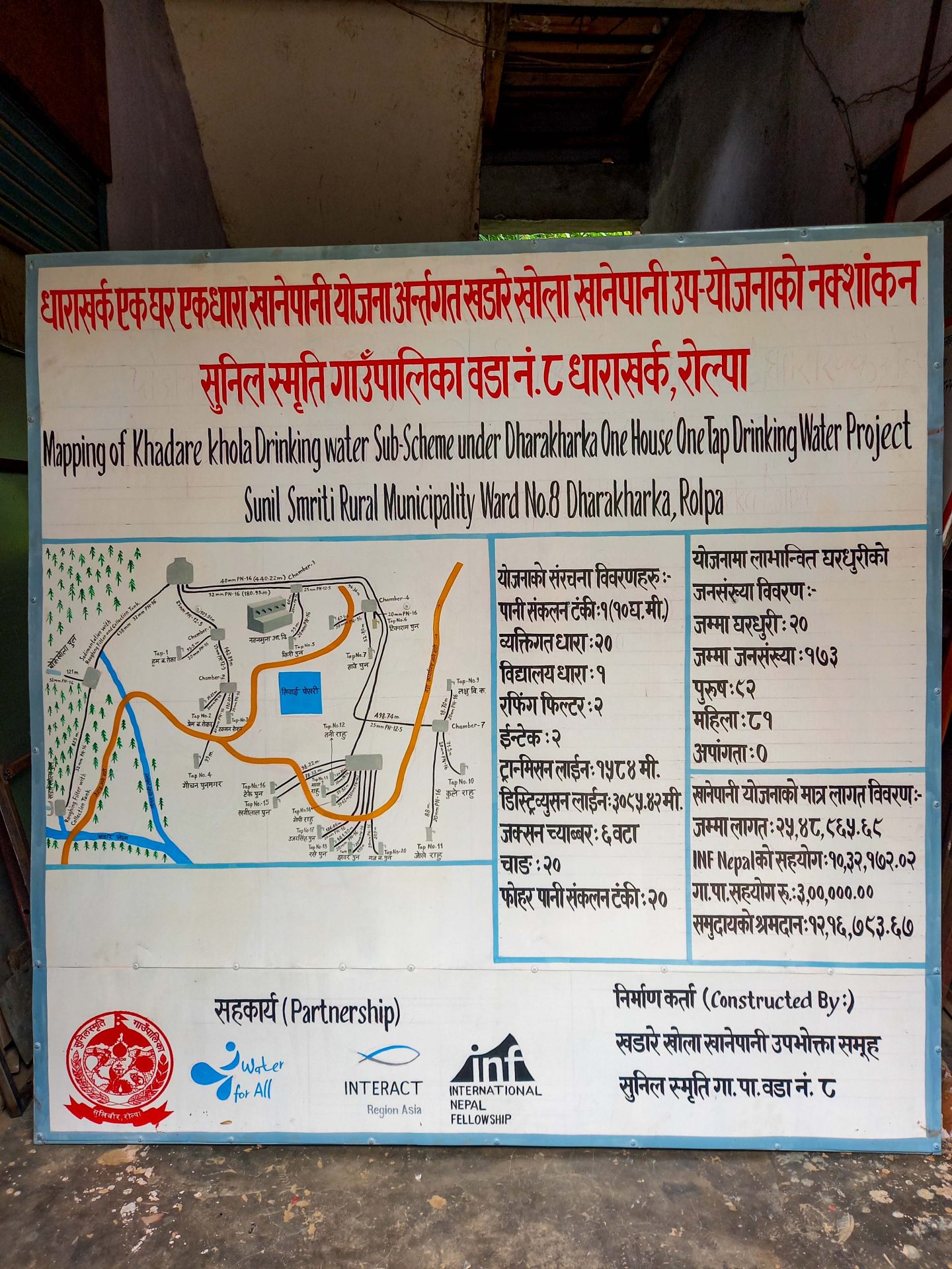 The total cost of the drinking water scheme, including the main system, wastewater collection ponds, and dish-drying racks, amounted to NPR 6,101,390. Of this, INF Nepal contributed NPR 2,344,010, Sunilsmriti Rural Municipality contributed NPR 300,000, and the local community contributed NPR 3,516,880 through labor contribution, local materials, and land support. This shared investment reflects strong partnership, local ownership, and collective responsibility.